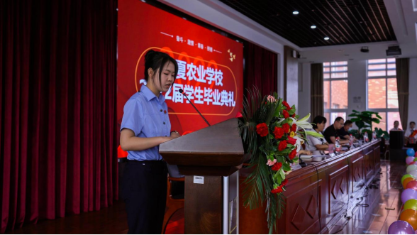 宁夏农业学校校长黄文娟宣读《关于准予2022届学生毕业的决定》,并向毕业生代表颁发毕业证书。