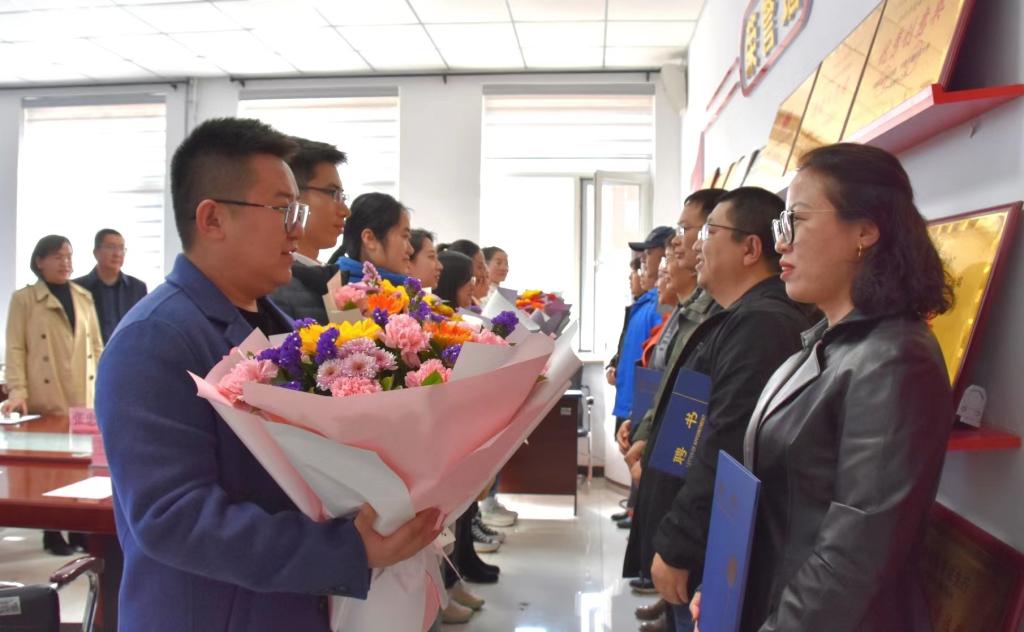 拜师仪式上,新入职教师作了自我介绍。冯丽宣读拜师结对名单,校领导为指导教师颁发聘书,并举行了新入职教师拜师仪式。