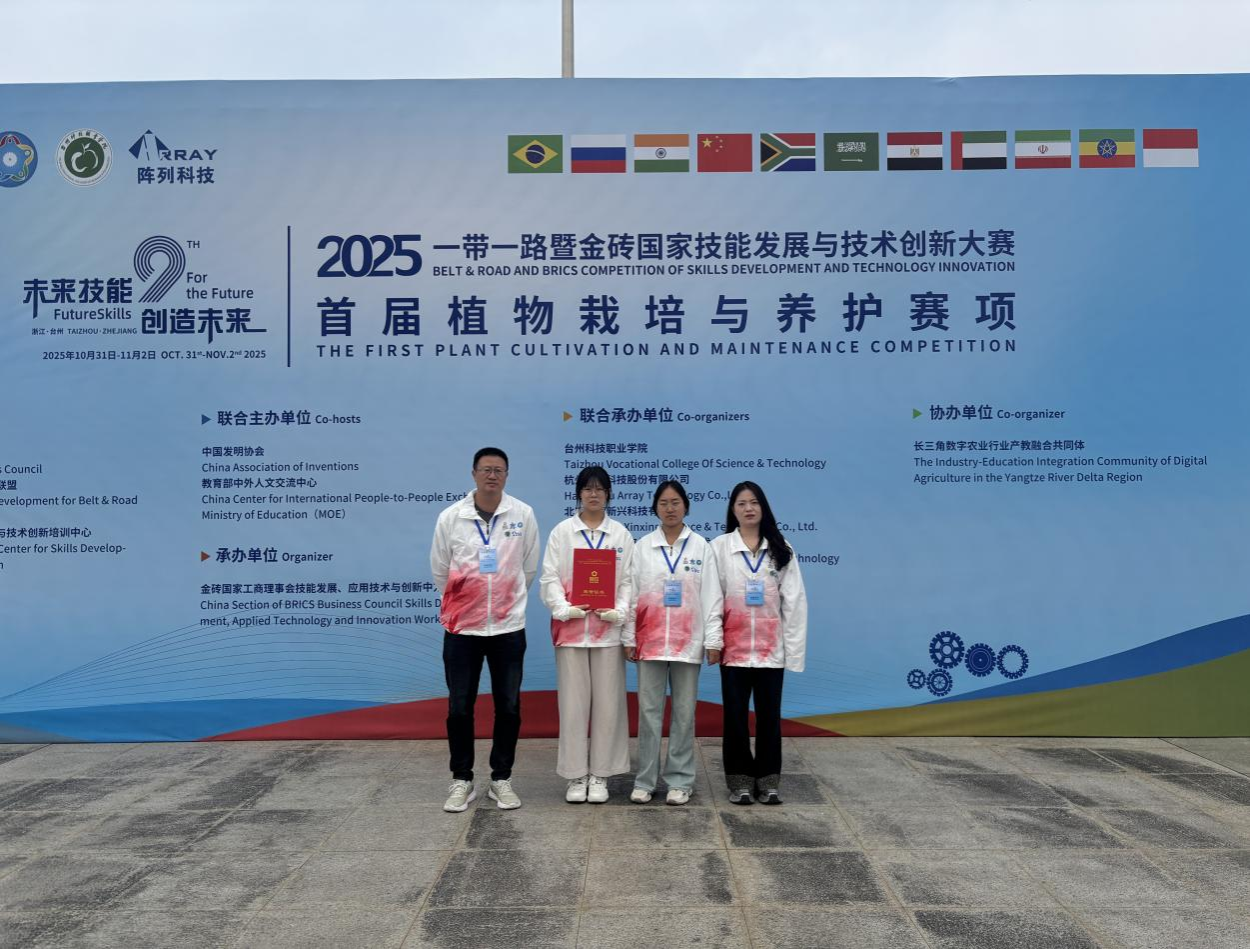 11月1日,由金砖国家工商理事会技能发展、应用技术与创新中方工作组及一带一路暨金砖国家技能发展与技术创新大赛组委会联合主办的2025一带一路暨金砖国家技能发展与技术创新大赛首届植物栽培与养护赛项圆满落幕。我校师生在此次大赛中表现亮眼,收获多项荣誉。