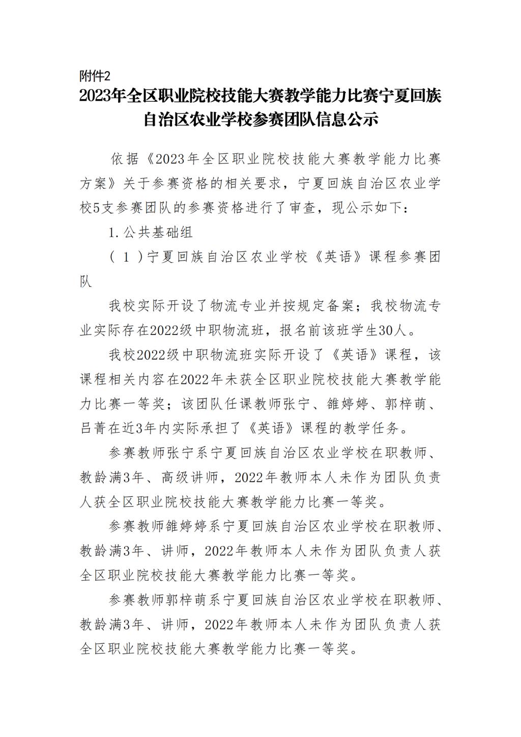 2023 年全区职业院校技能大赛教学能力比赛宁夏回族自治区农业学校参赛团队信息公示.pdf